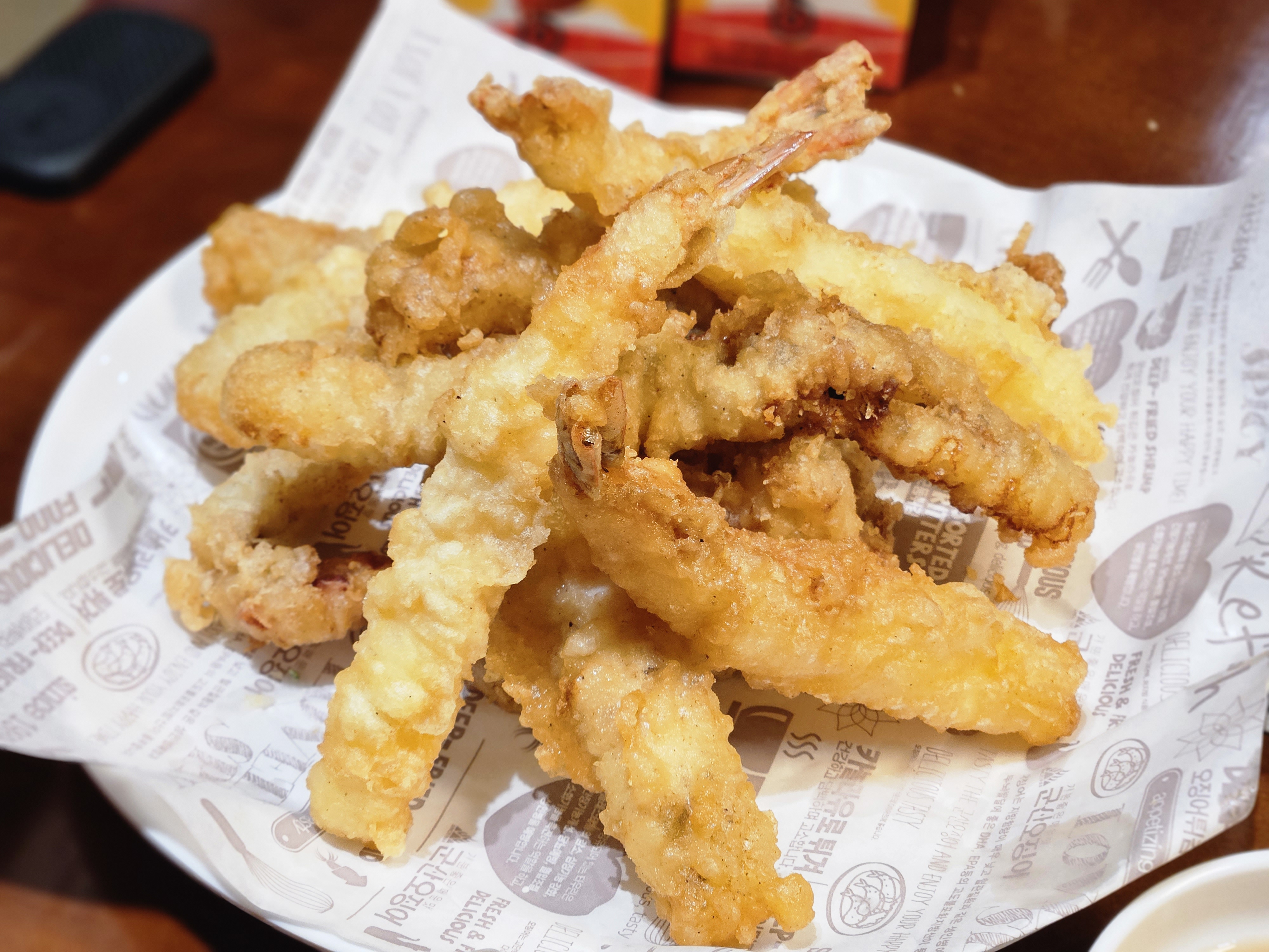 사이드로 오징어랑 새우 반반 튀김을 주문했다