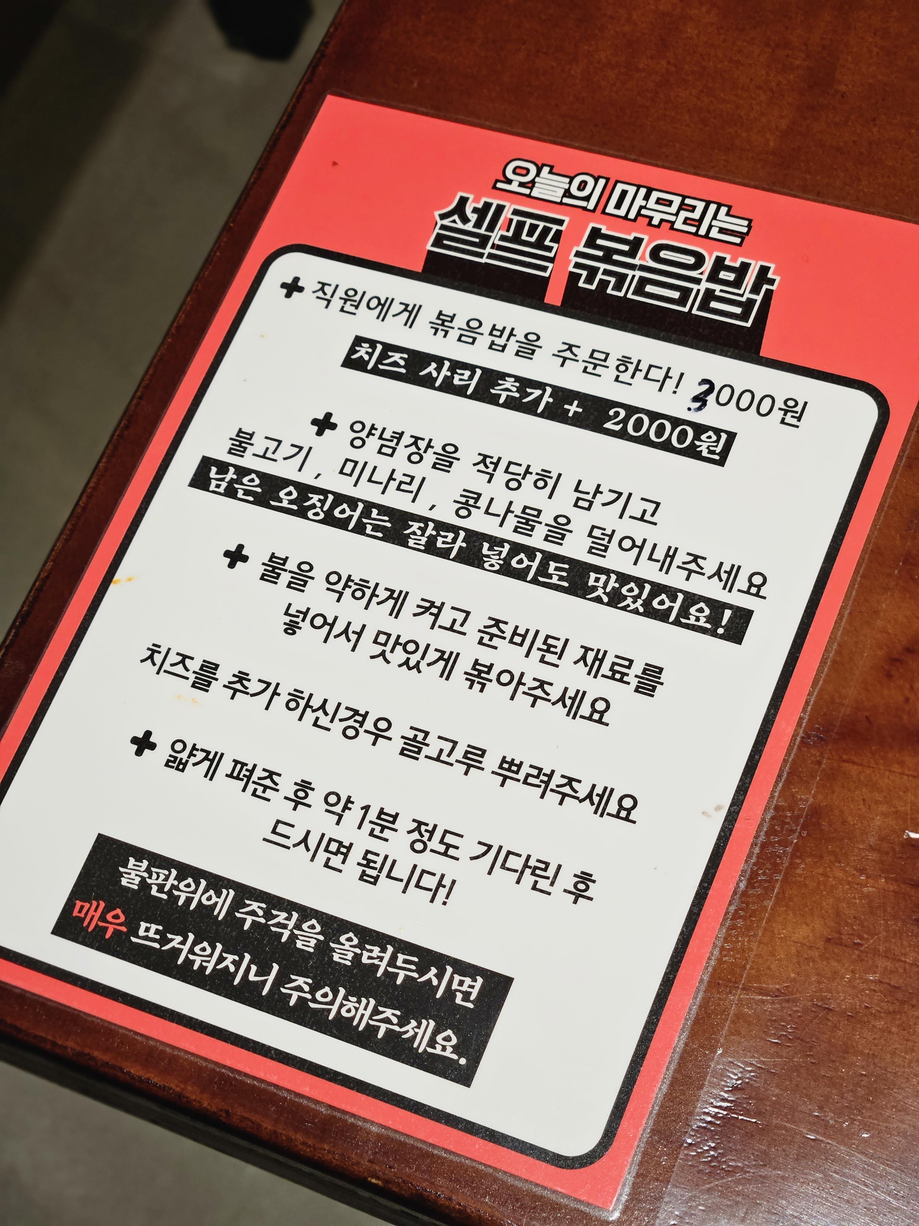오징어불고기의 마지막 코스는 셀프 볶음밥