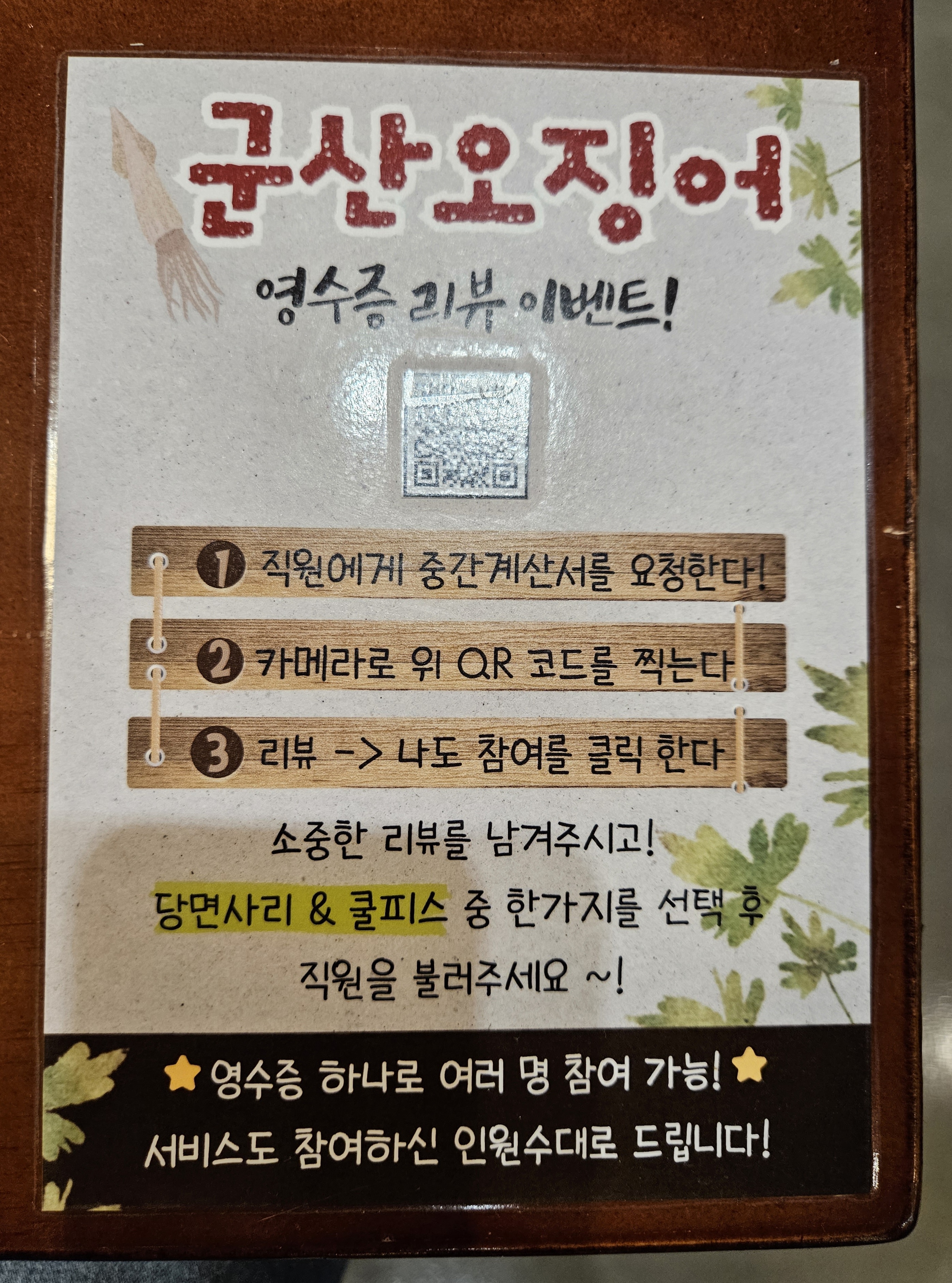 대기할 경우 카운터에 이야기 하고 번호표를 받아야 한다