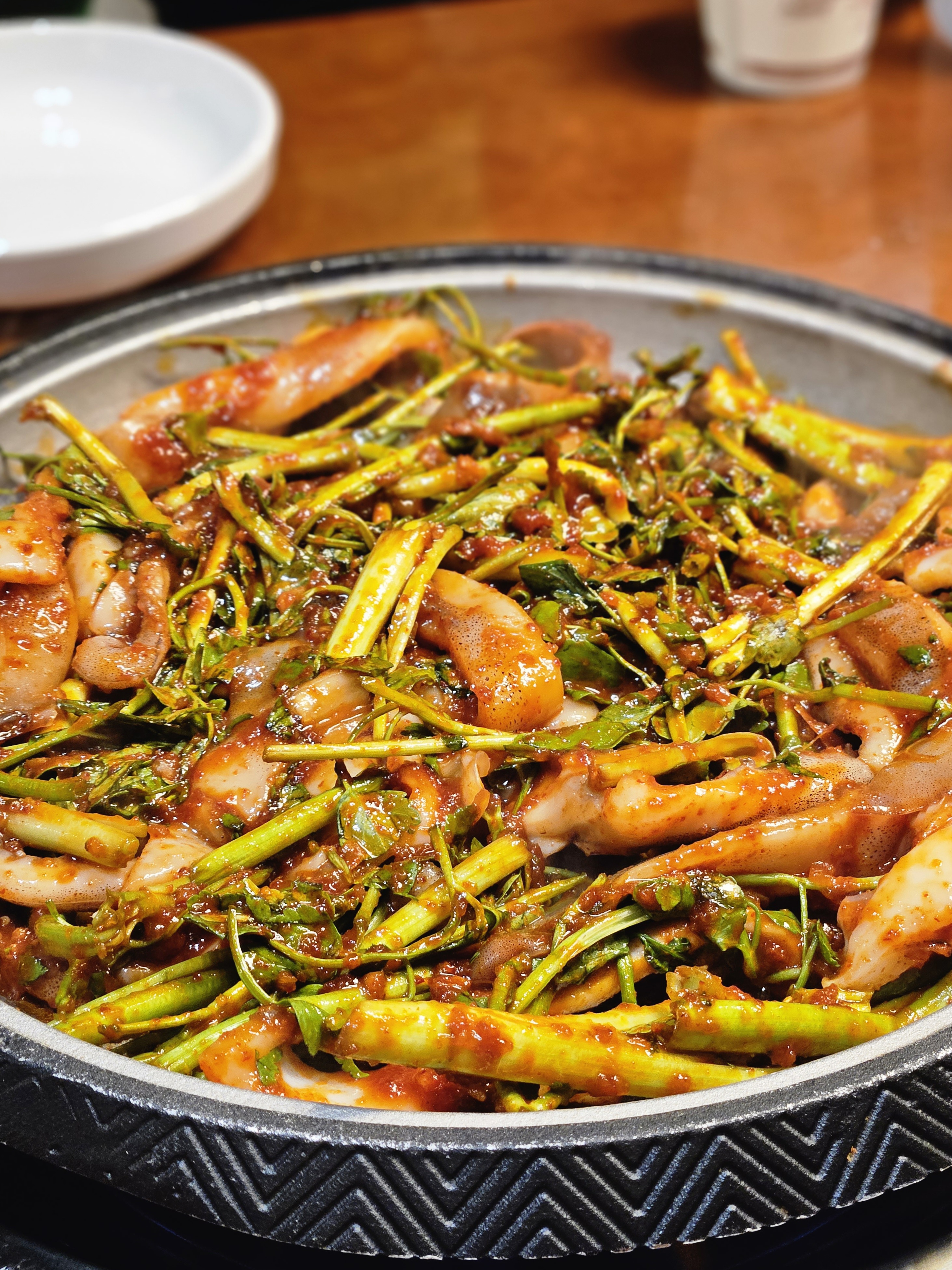 아마 오징어, 미나리, 콩나물이 익어가면서