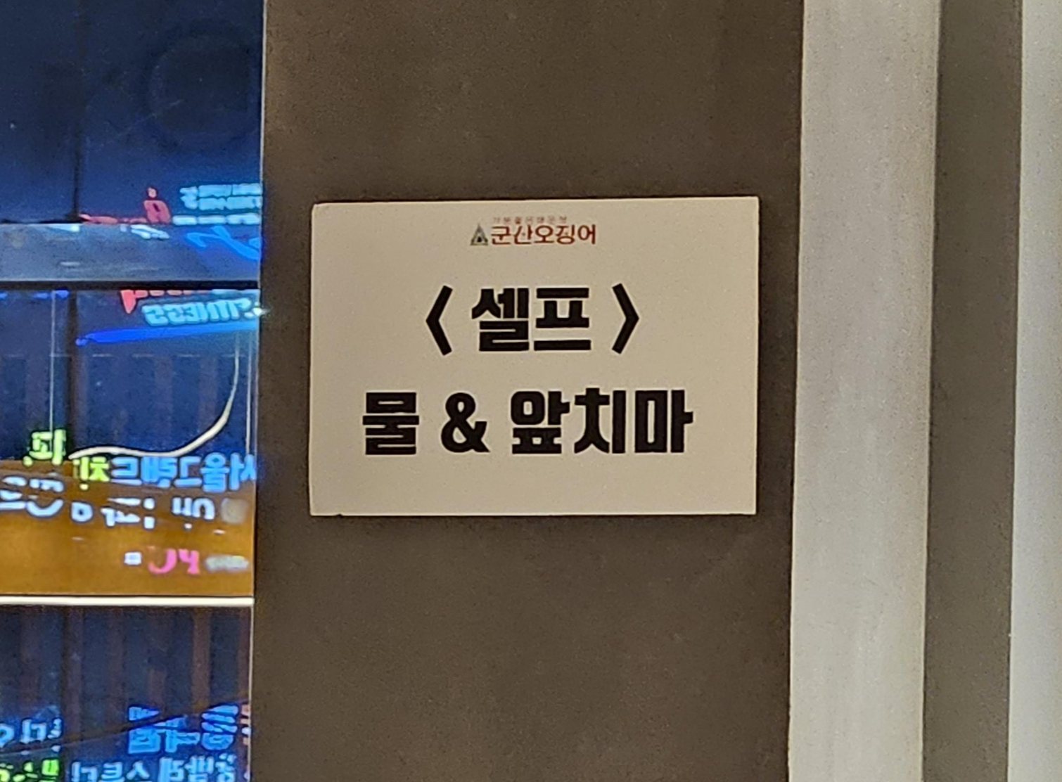 물과 앞치마는 셀프바 이용하기