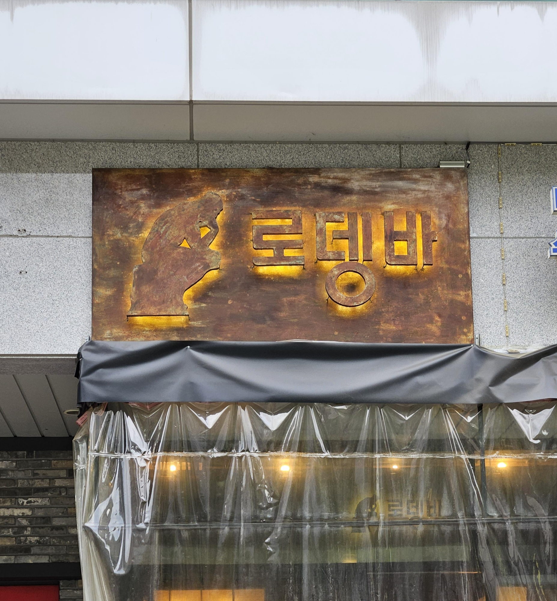 바테이블에 생각하는 로뎅 조각상이 있는데 어묵의 다른 이름을 오뎅이라고 부르는것과 어감이 비슷해서 로뎅바로 지은 것 같다. 그래서 로뎅 조각상을 갖다놓은걸까??