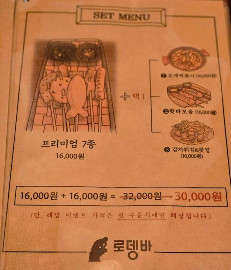 프리미엄7종 어묵과 세트로 같이 먹을 메뉴로는 로제떡볶이, 핫바모음, 감자튀김&핫윙 등이 있다