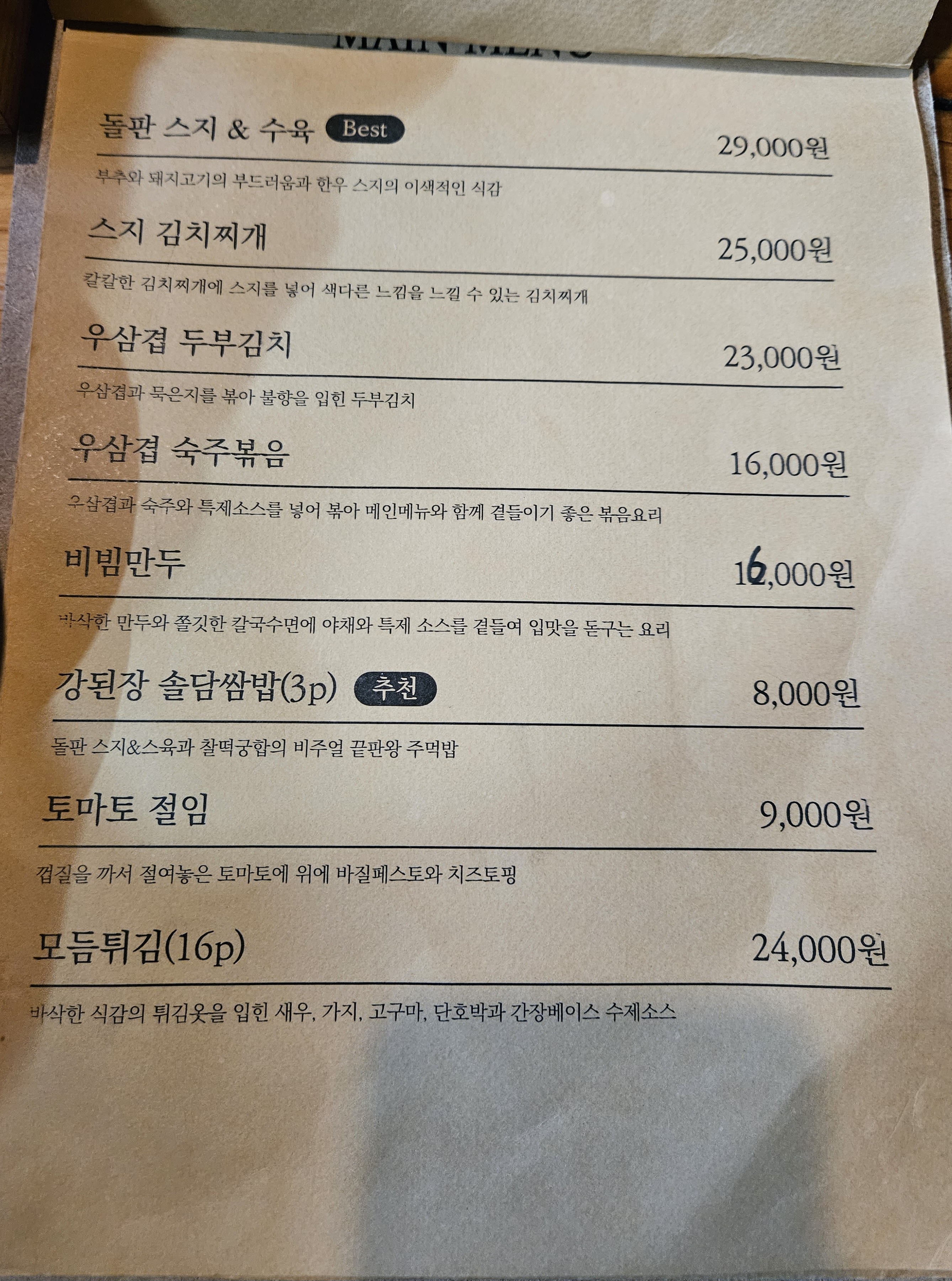 돌판 스지&수육과 잘 어울리는 메뉴인데